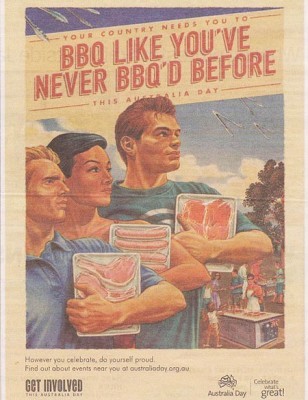 Прошлогодний плакат Дня Австралии "Barbecue like you've never barbecued before" - простой, не требующий обсуждения и всем понятный, даже без перевода, в этом году сменили темы более серьезные.