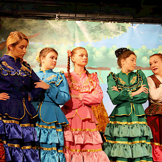 Евгения: Веселая, хорошая музыкальная постановка. А то раньше все время грустные да грустные были. С каждой постановкой у коллектива театра получается все лучше. Многие артисты — ученики нашей школы в Хомбуше. Пели на чистом русском языке.
