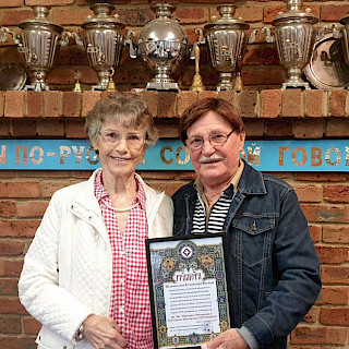 Донат Закрочимский вручил Почётную грамоту за многолетние труды верным помощникам организации Константину и Маргарите Нетребенко.