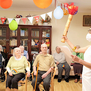 Следующим этапом мероприятия было формирование команд. Первый этап турнира — соревнования по мини-баскетболу. Резиденты оттачивали свою меткость, целясь разноцветными шариками в специальные корзины. Затем начался короткий, но эмоциональный чемпионат по футболу. Резиденты технично и умело забивали большой мяч в ворота противников.