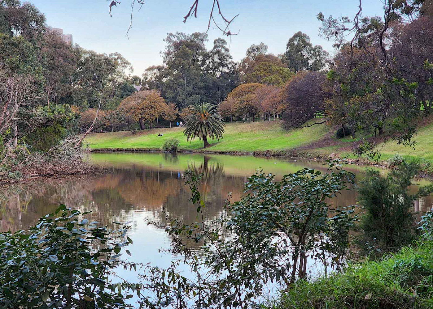 Мы любим парк Парраматта и часто приезжаем сюда после 4 часов вечера на прогулку с нашим спаниелем. Оставляем машину на огромной парковке для машин возле стадиона и отправляемся на часовую прогулку. А возвращаемся, когда небо и стеклянные окна городских зданий уже заполыхали в вечернем закате.