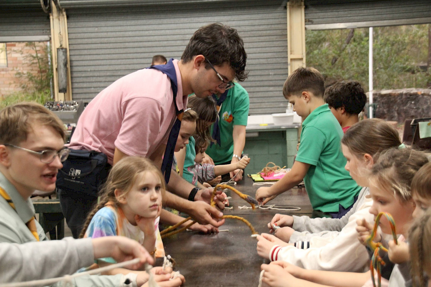 Что же мы изучаем в скаутском лагере? В первую очередь, это конечно разные игры на знакомство, чтобы все новенькие смогли почувствовать себя более раскрепощённо и свободно, перестали стесняться и подружились друг с другом. В первые дни также проводятся занятия по скаутингу. Ребята изучают законы скаутов, учатся маршировать (это обязательное правило в летнем лагере - на парад, с парада, на кухню, на занятия звенья должны ходить дружным маршем в ногу), изучают историю скаутизма, учатся вязать узлы, учатся ориентироваться на местности, читать лесные знаки, быть внимательными и наблюдательными. Бывают и весёлые занятия: приготовление пиццы или десерта для всего лагеря, разные поделки из природных материалов, музыка и пение, уроки русской истории и просмотры познавательных фильмов. В весеннем лагере были необычные занятия: ребятам показывали химические эксперименты, рассказывали о стихах, о разных странах мира. Всем лагерем играли в “Весеннюю викторину”.