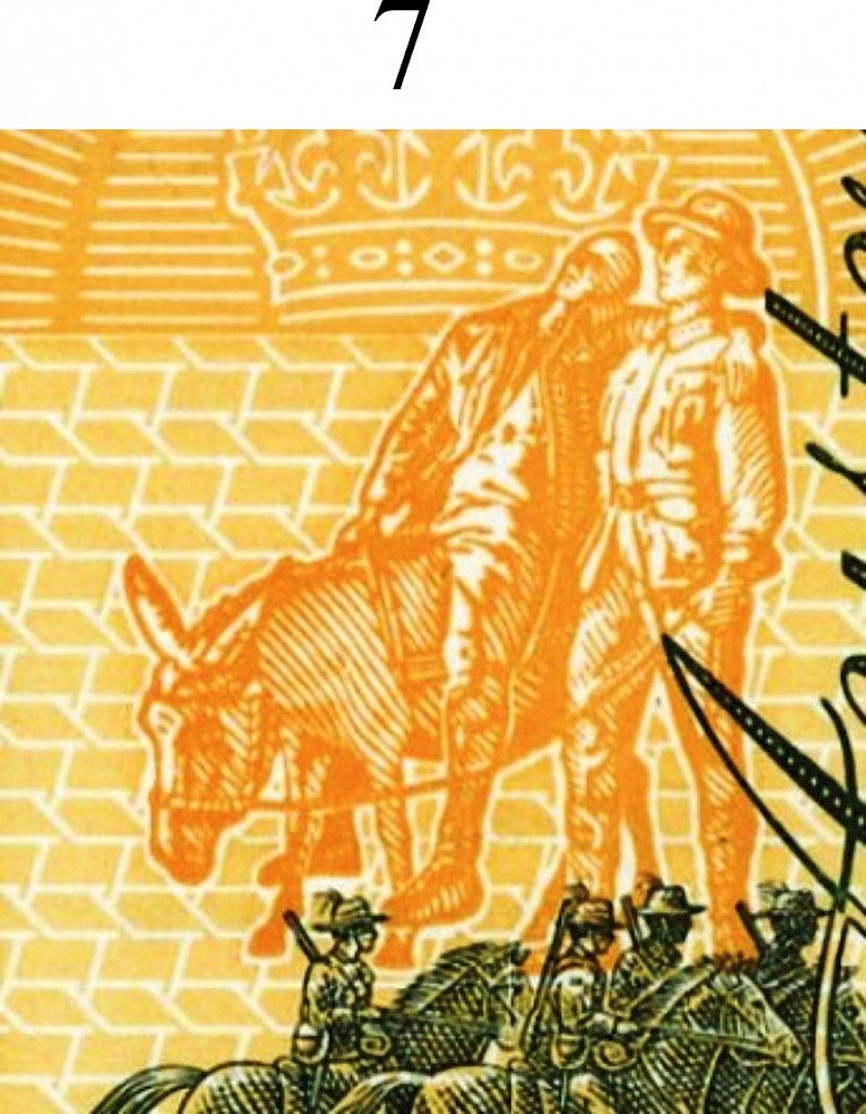 На стодолларовой банкноте портрет генерала Джона Монаша. Если внимательно присмотреться, то можно увидеть (слева, на желтоватом фоне) Джека Симпсона с его длинноухим боевым другом, которые перевозят истекающего кровью бойца.