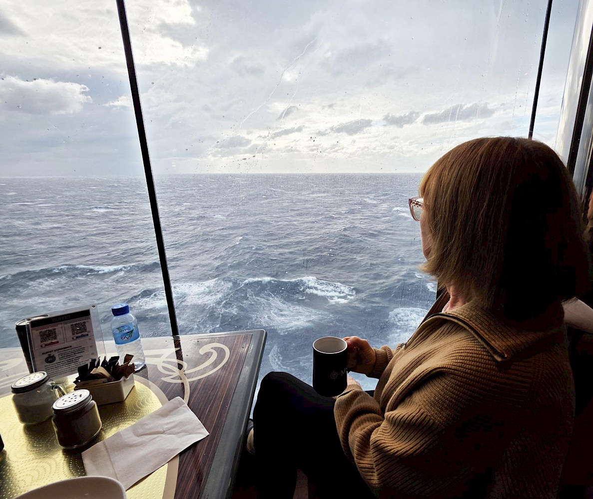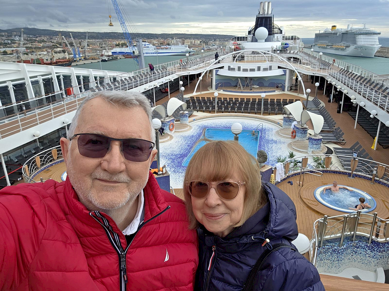 В самолете свободных мест не было, поэтому лечь не удалось, а сутки в прокрустовом кресле экономкласса авиалинии Qatar запомнились. Мы были очень рады, что все-таки добрались до Рима и портового городка Чивиттавекиа, где уже ждал нас красавец корабль – Оркестр, и уютная большая каюта с прекрасной кроватью, о которой мы мечтали прошедшие 24 часа. И в первую ночь и день круиза, когда мы без остановки шли от Рима к берегам Испании, мы лишь изредка вставали с кровати, чтобы проверить как работают кафе и рестораны на корабле и какие концерты проходят по вечерам. Надо сказать, что всё на корабле работало исправно и даже слегка с избытком. Трудно было убедить себя, что по советам врачей из-за стола надо выходить, слегка недоедая… На корабле начальники круиза гордо повесили табличку, что все 2000 мест на судне заняты, но корабль такой огромный, почти постоянно работали десяток ресторанов и баров, что мы не чувствовали перенаселения, разве только утром, когда люди выходили на берег очередного порта.