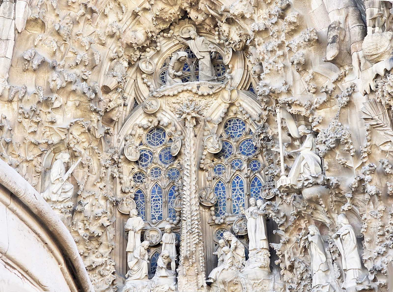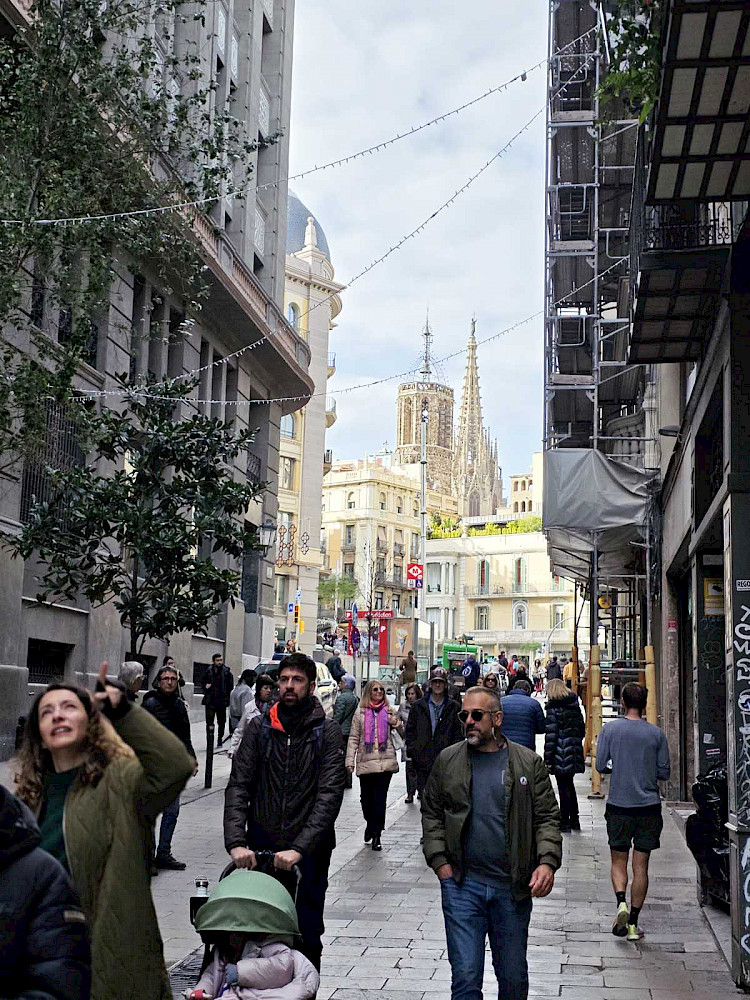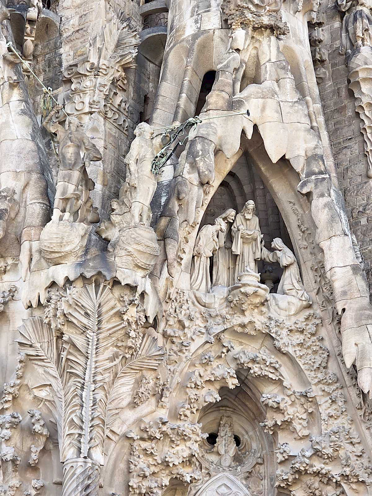 Возможно, на меня повлияли толпы туристов вокруг, а может то, что мы уже посмотрели десятки классических средневековых готических соборов с тонкими линиями резных шпилей, но мне показалось на их фоне, что собор Гауди перенасыщен смешением разнообразных стилей и вызывал у меня ощущение отсутствия чистоты линий и единого замысла. Впрочем, кто я в мире искусства, а кто Гауди!