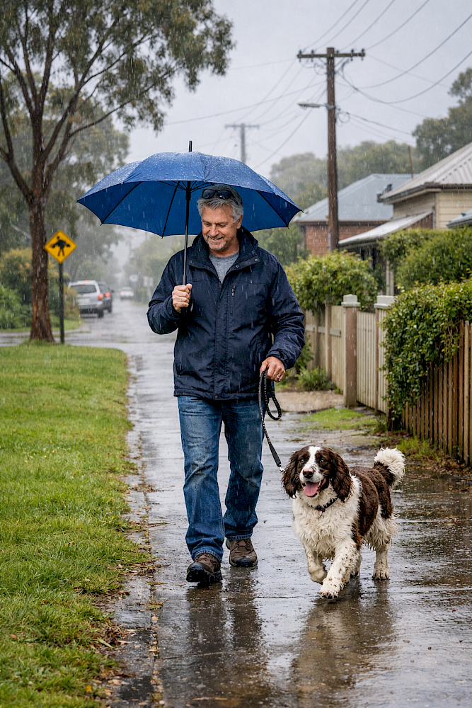 На улице срывается мелкий дождь и дует порывами сильный ветер. Мы гуляем с Тимкой по окрестным улицам и мне в голову приходят слова песни, которую исполнял Александр Градский "В полях под снегом и дождем...".