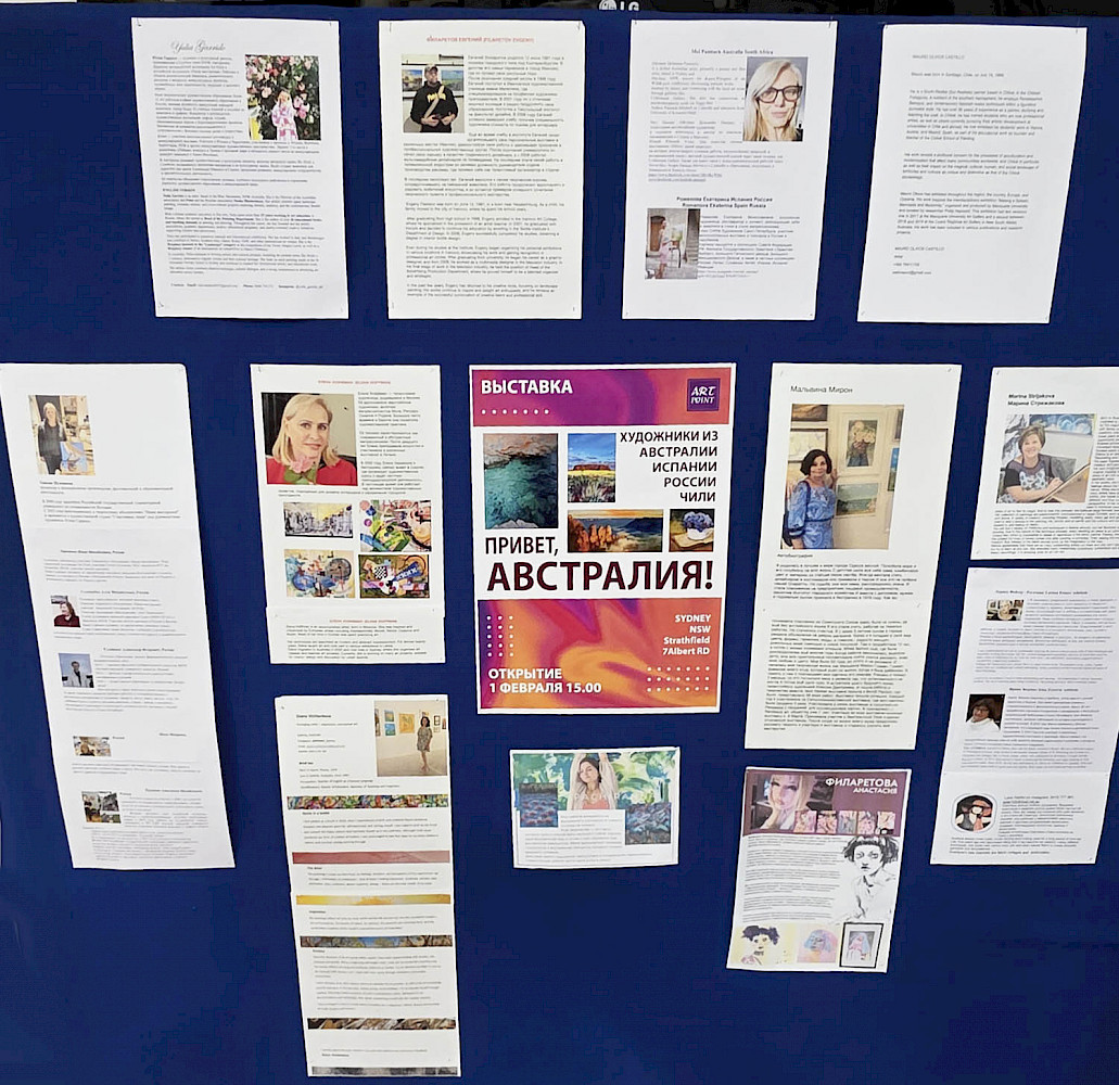 Выставка называется «Привет, Австралия». Её участники — это новые члены нашего объединения ArtPoint. Они были очень рады, когда получили приглашение выставить свои картины у нас. Мы получили немало благодарных отзывов. По тематике мы старались подбирать работы с фокусом на пейзажи Австралии и тех стран, где живут участники выставки. Профессиональное жюри отбирало работы по уровню рисунков и тематике, ArtPoint — это о красоте мира, который нас окружает. Немало работ на выставке – это австралийские пейзажи, рисунки птиц и цветов, то, что бросается в глаза сразу, когда приезжаешь в эту страну. Мы рады, что нас поддержали и те художники, которые уже давно были связаны с Русским клубом.