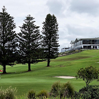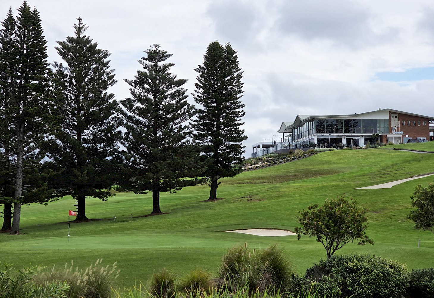 После прогулки на площадке - отправляемся по тропинке у моря, проходим по окраине поля для гольфа, где всех проходящих предупреждают хорошо видимые надписи "Случайные шары для гольфа могут долетать сюда". Но сегодня гольфистов нет, поэтому мы можем смело сделать фото на окраине поля с видом на аккуратно подстриженные лужайки, фонтан, здание гольфклуба, и отправляться дальше в сторону пляжа.