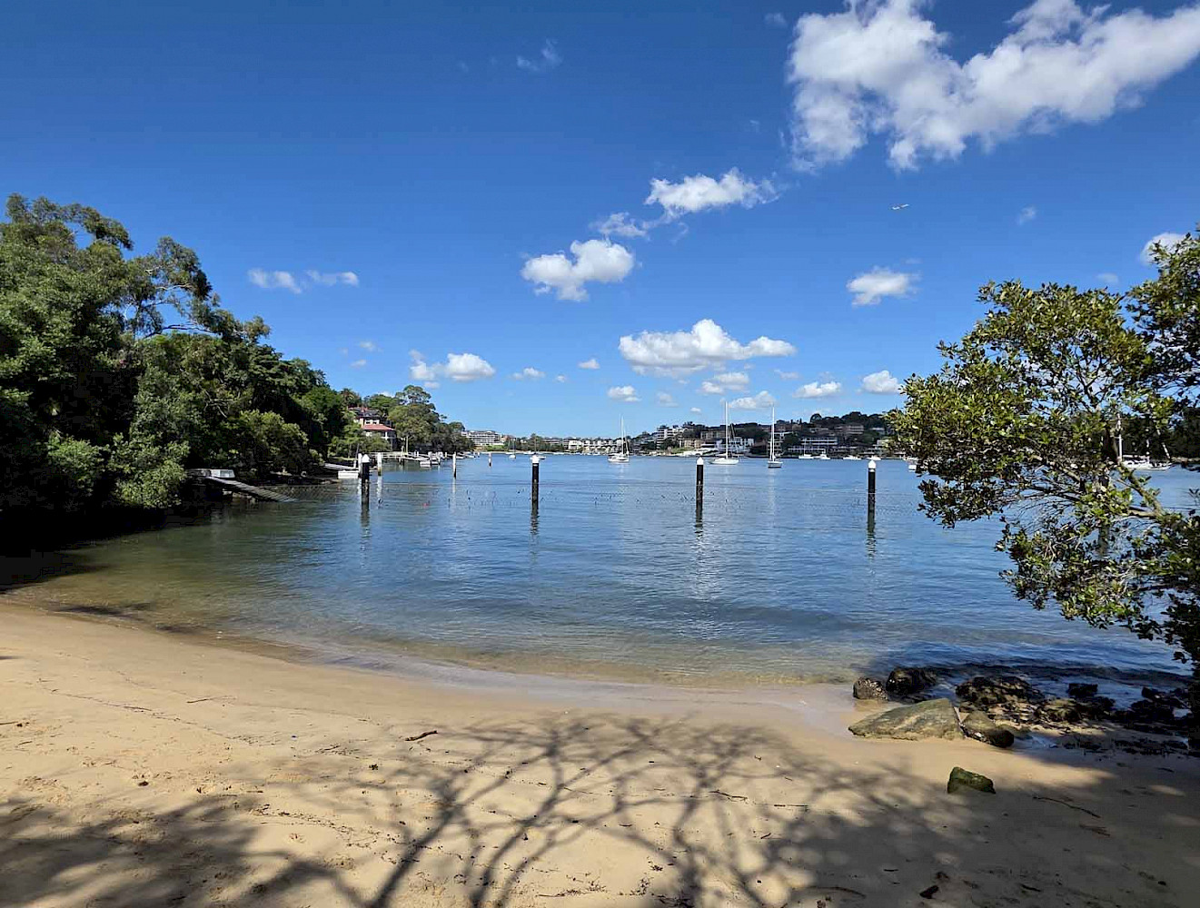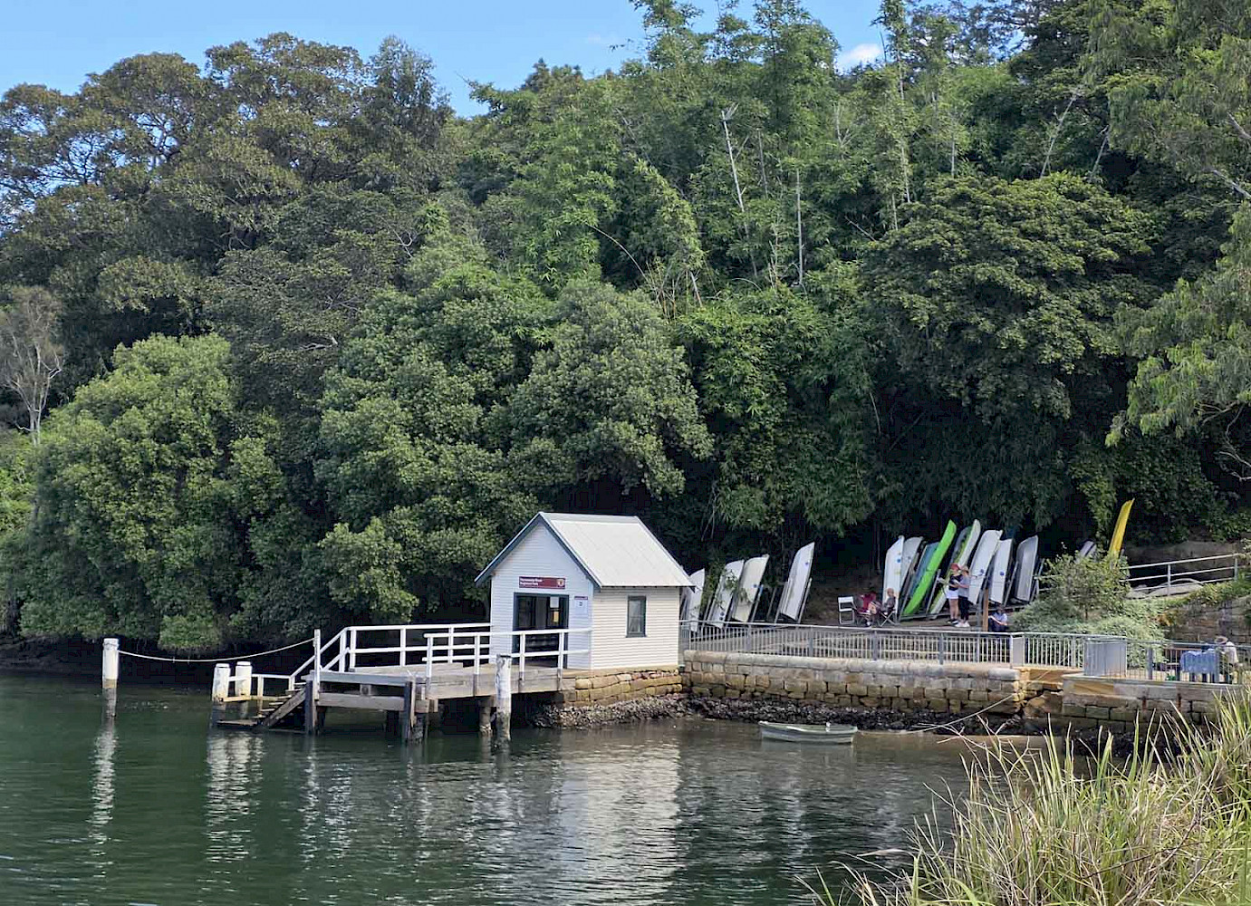 С красивого мыса на воде окрывается вид на район Абботсфорд на другом берегу и Королевский гребной клуб с популярным рестораном. Когда-то в 19 веке в этом месте ходил паром, перевозящий грузы и пассажиров. Сейчас здесь видны остатки причала,  сделанного еще руками заключенных, из огромных камней песчаника. Тропинка вдоль берега через заросли ведет к лодочному причалу и небольшому пляжу, очищенному и отгороженному от морских опасностей сеткой.