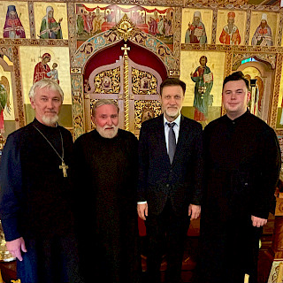 В беседе с послом настоятель храма протоиерей Ярослав Беликов рассказал об истории прихода, об отношении местного населения и властей к русским, о деятельности русской православной общины в Джилонге.
