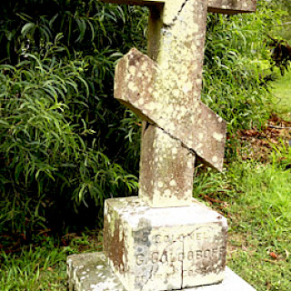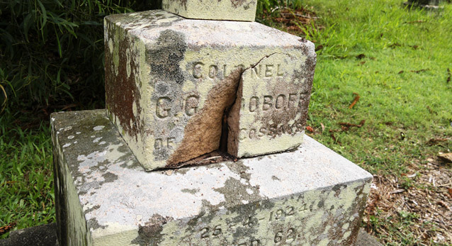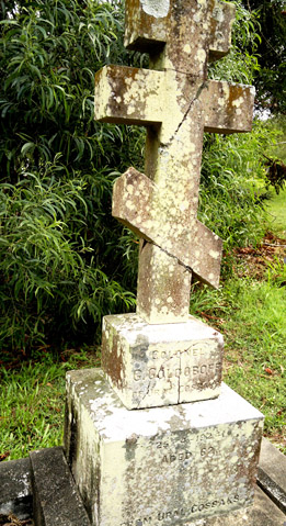 Русская православная часть кладбища Тувонг расположена на вершине холма. Но чуть ниже, под сенью австралийского эвкалипта, сиротливо стоит могила с православным крестом. Это недавно отреставрированный памятник из песчаника, установленный еще в те времена, когда «русского участка» здесь не было и в помине.
