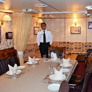 Если на других кораблях почти не показывали внутренних помещений, то на корабле из Малайзии KD Jebat посетителям даже разрешили посмотреть капитанскую столовую, стол в которой был аккуратно сервирован.