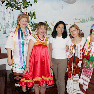Затем прозвучали русские песни в исполнении Арсения Хлыновского и Натальи Семенеевой. Всем понравилась задорная украинская песня в исполнении Инессы Макинтайр. Сюрпризом концерта, а сюрпризы случаются почти на каждой встрече «Лампады», стала скрипачка Алена Чигуля, аккомпанировавшая Инессе Макинтайр. Девушки составили необыкновенно артистичный дуэт. Музыкальный семейный дуэт Ирины и Елизаветы Сеги (скрипка и баян) представил вниманию зрителей попурри на тему русских народных песен. А русские танцы в исполнении Елизаветы Сеги вызвали бурю аплодисментов. Все исполнители были в этнических костюмах.