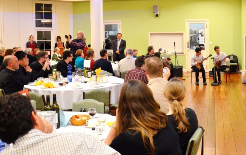 Организатор и ведущий встречи Марк Ганин проводит такие вечера ежегодно в Мельбурне и Сиднее, и это был уже 21-й благотворительный ужин. Большую поддержку в проведении мероприятия оказало сестричество собора в Мельбурне во главе с Любовью Коваленко, и это действительно огромный труд, так как в этот вечер собрались 140 гостей. Хотелось бы отметить прекрасно организованную программу вечера: камерный хор Melbourne Capella Chamber Choir под руководством Николая Коваленко исполнили русские народные песни, братья Карыповы спели и сыграли под аккомпанемент балалайки и гитары, Максим Шеко исполнил музыкальные произведения на скрипке. Далее был проведен аукцион и лотерея. В результате встречи были собраны 19 тысяч долларов, которые пойдут на продолжение строительства.