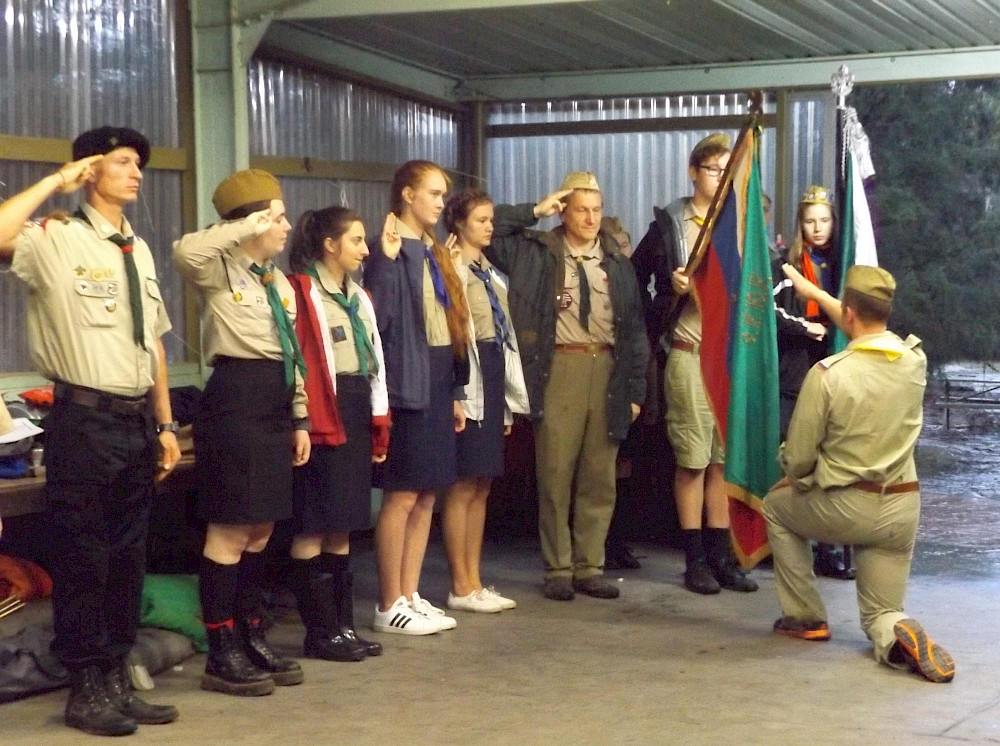 На последнем спуске флага были зачитаны приказы, где выражалась благодарность всем, кто помог успешному проведению этого лагеря. Несколько человек получили руководительские косынки: мы поздравляем Марию Сивинскую, Людмилу Шерстнову, Нину Верезуб и Бориса Беликова с получением звания штаб-инструктора, а Светлану Иловайскую со званием инструктора! Поздравляем ребят, получивших звание лучшего в лагере: в этом году это были Виктория Цингалёва и Егор Урусов. Также звучала благодарность в адрес начальницы лагеря, Тамары Смит. И, конечно же, мы как всегда благодарили наших работников кухни: наш гость из Германии подтвердил нам, что он нигде так вкусно не ел, как у нас в лагере! А в этом лагере Оля Троменшлегер постоянно баловала нас пирожками и разнообразными салатами. И спасибо нашим водителям, Валерию Вишневскому и Владимиру Николаеву, за то, что привезли аделаидцев в Мельбурн и обратно!