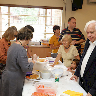 - Моя семья стала посещать этот храм тридцать лет назад, когда мы поженились в 1990 году. В те годы было намного больше членов старшего поколения, людей которые молились тут с самого начала этого храма. Священником был тогда о.Михаил Бойков, он умел привлекать целые семьи, людей разного поколения. Затем был период времени, когда не все получалось у нас, менялись священники, а сейчас опять все вернулось в норму, и, я думаю, храм опять начнет расти. Сейчас у нас больше новоприехавших и австралийцев, которые перешли в православие. Много интересных людей, могу сказать - у нас живой приход. Хорошее сестричество, не много людей, так что приходится усердно работать, но они справляются прекрасно, с душой это делают, сами пекут просфоры, украшают и чистят храм, устраивают встречи, как сегодня. Хороший хор у нас, регент Лаврентий Бойков сумел собрать молодежь и удержать у нас, в небольшом храме, хотя хористам было бы легко перебраться в крупный собор или в Покровский храм в Кабраматте.