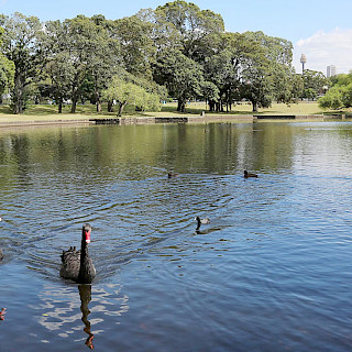 «Почти в центре двухмиллионного города раскинулся этот парк. В нем много озер, птичий заповедник, вековые деревья - смоковницы, лавры, пальмы; широкие аллеи и огромные зеленные поля для спорта; конюшни, где можно взять верховых лошадей; в граните и мраморе Диккенс, Гладстон; на высоком холме русские пушки, взятые в Севастополе; скромные мемориальные плиты скромных дат - ведь стране всего150 лет, а Федерации полвека.