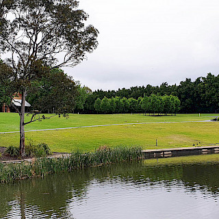 Но вернемся к парку Двухсотлетия и его окрестностям. Парк находится примерно в 15 километрах на запад от океана. В прошлом веке это были заброшенные места на берегах залива Homebush Bay, являющегося частью реки Парраматты, одной из трех главных рек города. Здесь располагались карьер Brickpit, где добывали глину для кирпичей, скотобойня, различные химические предприятия. Короче, мало красивого. Все это постепенно исчезло, место было очищено, приведено в порядок, и даже река и залив стали смотреться чище. Особенную красоту эти места приобрели перед сиднейской Олимпиадой 2000 года, когда эта территория стала частью большого района Sydney Olympic Park со стадионами и Олимпийской деревней. Видно, что за парком ухаживают. Была сделана прекрасная аллея с фонтанами, установлены красивые беседки, создана мемориальная зона с уютными скамейками Silent Hearts. Выстроен новый причал, теперь сюда можно приехать из деловой части города или района Парраматты на речных катерах.