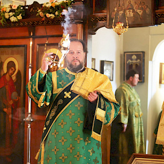 Обращаясь к настоятелю храма, владыка Николай сказал: «Здесь такой прекрасный храм. От имени нашего Синода мы благодарим отца Семена, его семью и поздравляем с престольным праздником. Передаю поздравления от о. Серафима и о. Александра, которые также молились сегодня в этом храме. Также поздравляем с престольным праздником наших диаконов за прекрасное служение, прислужников за помощь, певчих за пение и всех прихожан этого храма». Владыка Николай вручил о. Семену подарочную книгу.