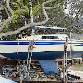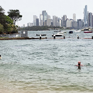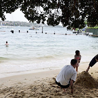 Собственно, это отгороженная защитной сеткой и облагороженная часть одного из заливов на реке Парраматта рядом с впадением в неё реки Лэйн Коув. На небольшом песчаном пляже есть пластмассовые лежаки, мягкие синие подстилки, есть кафе, туалеты. Нависающие над пляжем деревья дают необходимую тень для таких отдыхающих как мы, которые хотя и ходят на пляжи, но не очень любят жариться на солнце.
