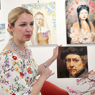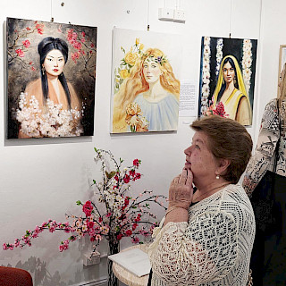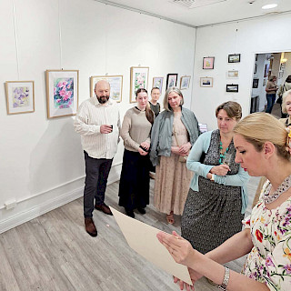 Юлия Гарридо (Ващенко) рассказала собравшимся о себе, о картинах, представленных на выставке, о своих планах. Художница отметила, что, если кто-то захочет, чтобы нарисовали их портрет, она будет рада выполнить эту работу.