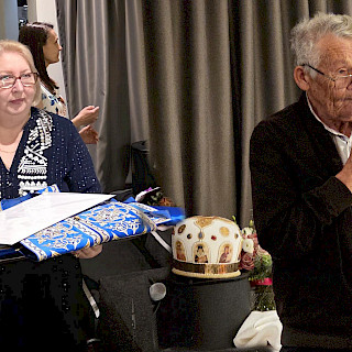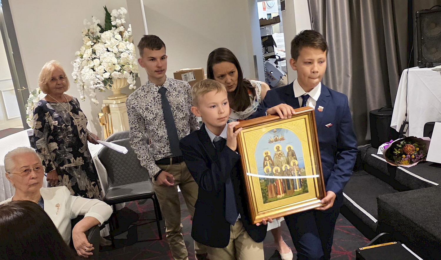 От прихожан Св.Николаевского прихода выступил многолетний староста храма Гавриил Тоболов. Отцу Никите были вручены подарки прихожан - икону и церковное облачение, а матушке Катерине - красивый букет цветов. Юбиляра поздравила также Елена Иванцова от организации «Православное дело - Сидней», Агафья Инь Ланге от Австралийской русско-китайской ассоциации, Марк Ганин вручил юбиляру в подарок икону, написанную в женской обители в Бангарби, а Александр Фоменко поздравил о.Никиту, вспомнив как почти 30 лет назад он венчал его с Наташей Морозовой в Св.Николаевском храме. В завершении встречи Наташа Морозова исполнила несколько любимых многими русских народных песен.