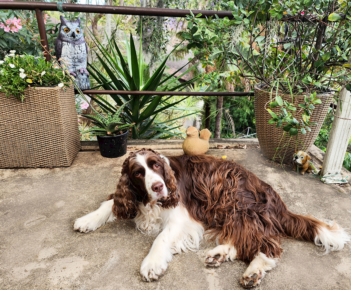 Вот уже 11 лет с нами живет лохматый спаниель. Это меняет твое расписание, заставляет меня вставать рано утром и кормить вечно голодного зверя. Конечно, когда он не голоден, я бы его зверем не назвал, сама "лапочка". Но он, впрочем, почти всегда голоден, такая порода, и на прогулках всё время крутит носом в поисках чего-нибудь съедобного, гуляя по траве вдоль дороги.
