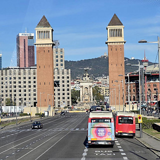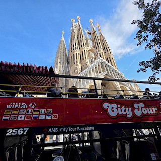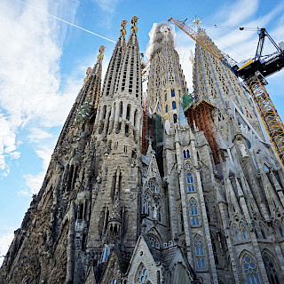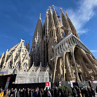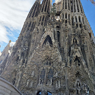 Вторым городом, появившимся для нас очередным ранним утром, была Барселона. Тут мы, конечно, планировали посмотреть знаменитую церковь архитектора Гауди и символ Барселоны Саграда Фамилия, что означает Святое Семейство. Мы на туристическом автобусе объехали весь город, где почти треть времени нам рассказывали про местную футбольную команду, которую местные фанаты называют Барса. Видим это ценность номер один для жителей города, а творения Гауди на втором месте. Впрочем, когда мы вышли у знаменитого храма, мы поняли, что туристов здесь существенно больше, чем у стадиона Барсы. Огромная толпа людей окружала туристическую достопримечательность кругом, подойти близко было нельзя. Хорошо, что большое видится на расстоянии. Мы посмотрели все три фасада. Здание, конечно, впечатляет своей мощью, высотой и разнообразием. Тем более, что в эти дни как раз заканчивали устанавливать кресты на башне и собор стал самым высоким в Европе, почти 163 метра.