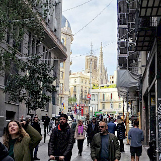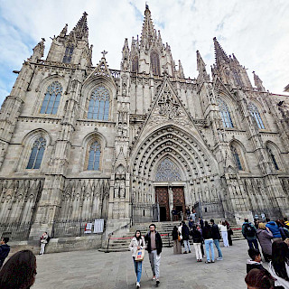 Возможно, на меня повлияли толпы туристов вокруг, а может то, что мы уже посмотрели десятки классических средневековых готических соборов с тонкими линиями резных шпилей, но мне показалось на их фоне, что собор Гауди перенасыщен смешением разнообразных стилей и вызывал у меня ощущение отсутствия чистоты линий и единого замысла. Впрочем, кто я в мире искусства, а кто Гауди!