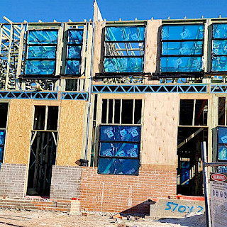 Год назад я гулял утром по нашему району и сфотографировал строящийся дом. Такой, наиболее типичный для современной Австралии, так называемый, brick veneer, то есть с деревянным каркасом, а обшивка наружных стен проводится кирпичом. Позже, гуляя в этих местах замечал, как не спеша строительство продвигалось вперед. И вот сегодня вижу, дом готов, строители поливают уложенные блоки травы у дома, видимо, готовят к продаже.