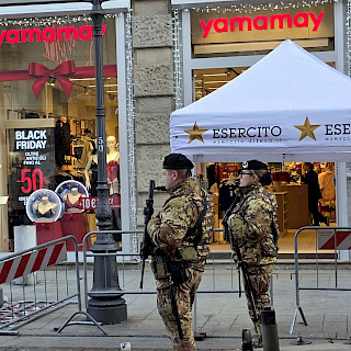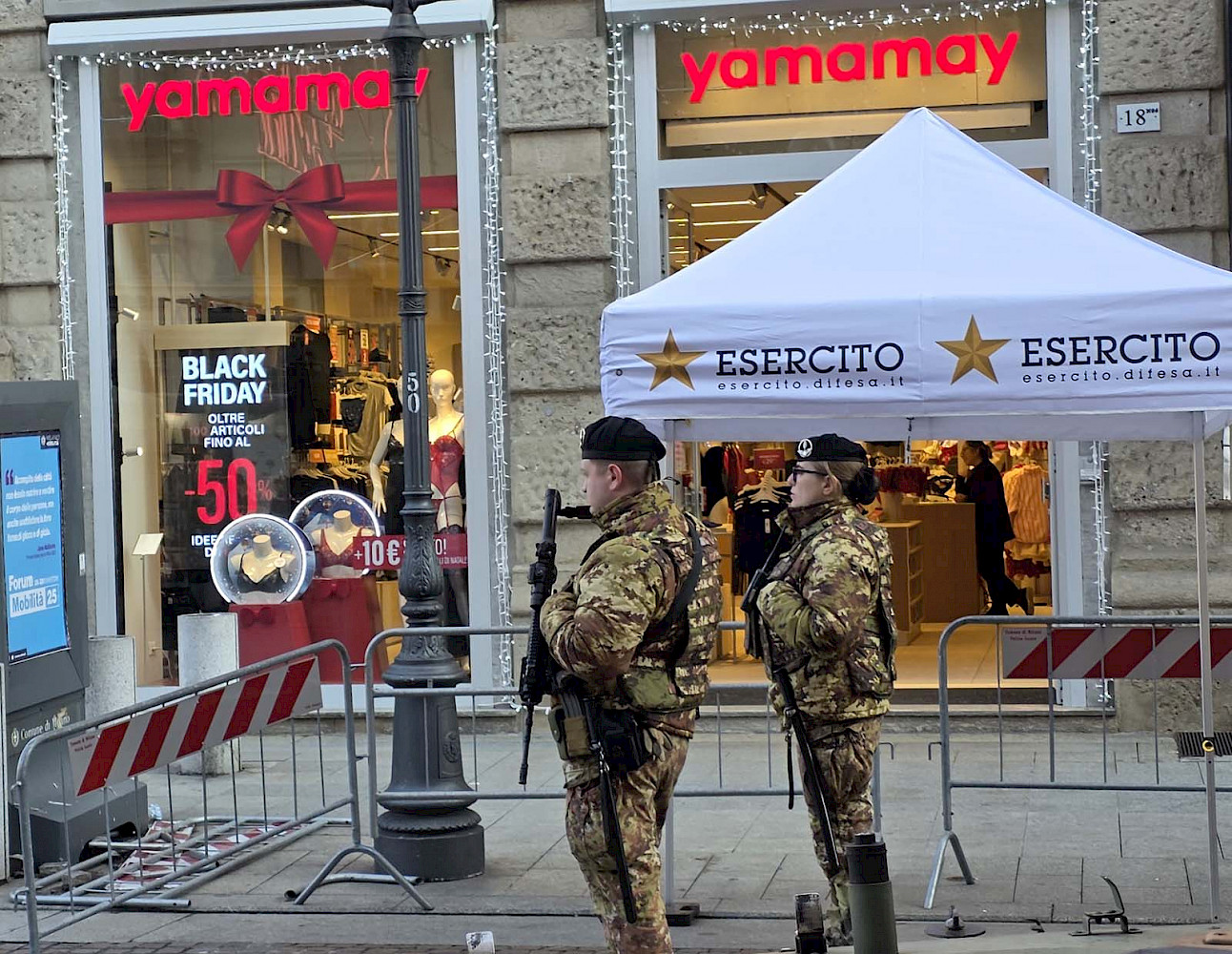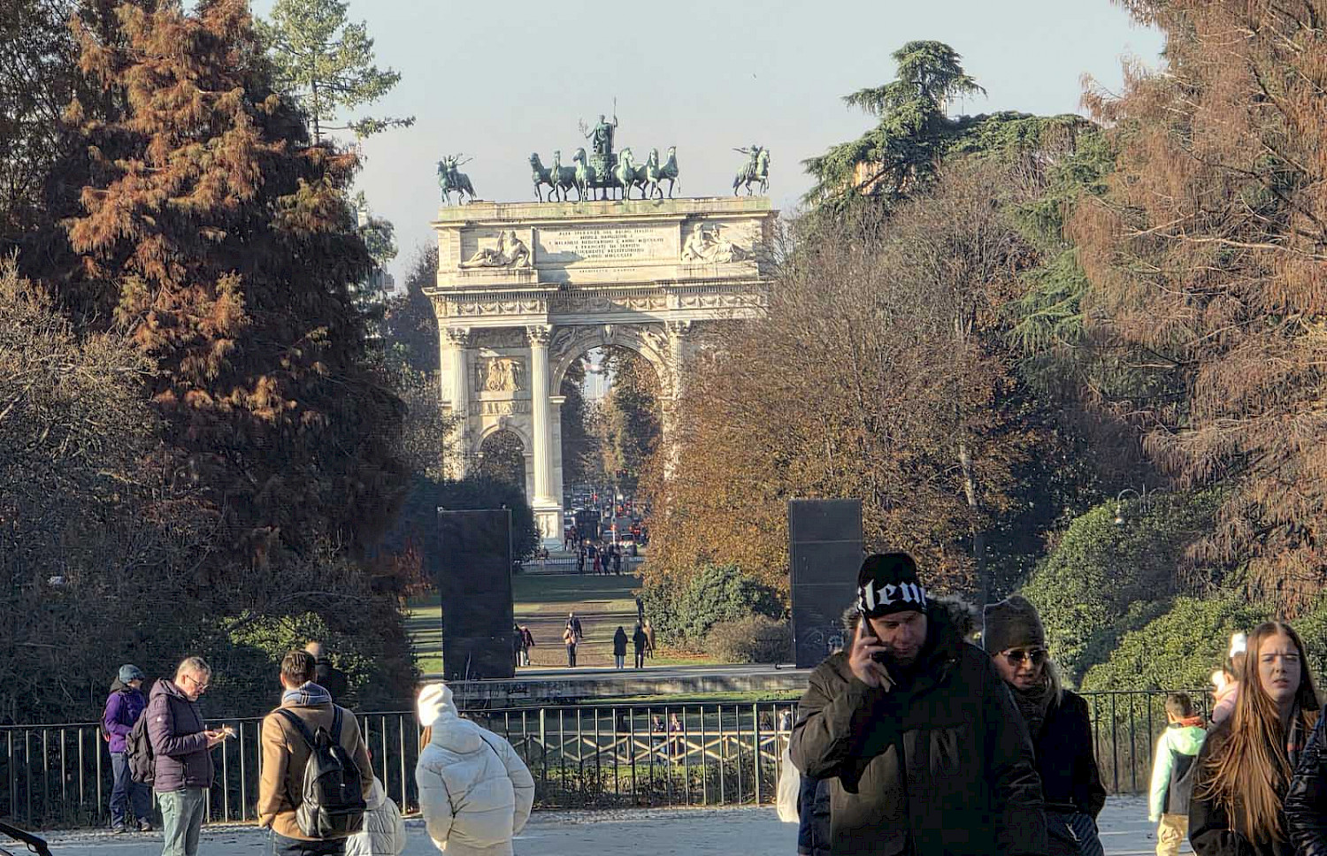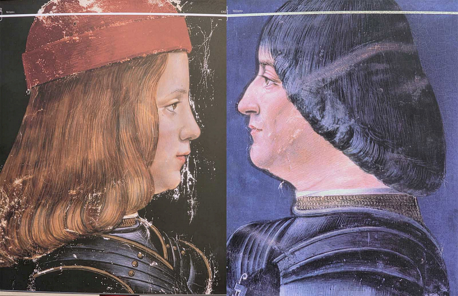 Мы проехали вдоль уютных, еще зеленых, несмотря на конец ноября, маленьких итальянских городов, остановившись у старинного кирпичного замка Сфорца Castello Sforzesco в центре Милана. В этих местах, в отличие от Флоренции и других итальянских городов, не было рядом месторождений мрамора, поэтому башни и стены были выстроены в 15 веке из кирпича. Внешний вид старинных стен напомнил мне Московский кремль, и неудивительно. Ведь кремлевские стены и башни были выстроены по распоряжению Ивана III в те же времена с помощью итальянских архитекторов Аристотеля Фиораванти, Пьетро Солари, у которых учились русские мастера. Внутри замка есть росписи Леонардо да Винчи, этот мастер провел в Милане около 20 лет, работая на герцога Людовико Сфорца, владельца замка, создав здесь свои шедевры «Тайная вечеря» и «Дама с горностаем».