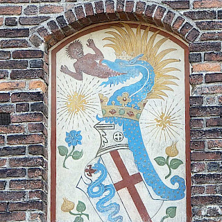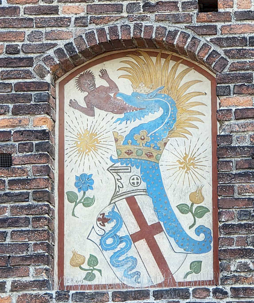 На стене замка мы увидели герб Милана, изображающий змею и красный крест на белом фоне. Те, кто видел автомашины Alfa Romeo, знаком с этим гербом, ведь именно в Милане начинался путь этого популярного автомобиля.