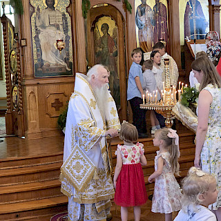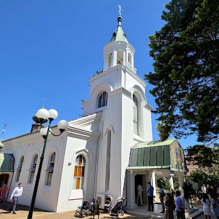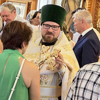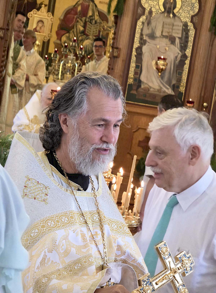Красивые праздничные православные службы притягивают самых разных людей. Алексей Феофилов, который активно участвует в жизни прихода собора уже много лет, познакомил нас с Энтони. Он вырос в Стратфилде, видел Петропавловский собор, но в его окружении тогда были протестанты. Поехав в Оксфорд, он попал на службу в православный собор и проникся православием. Вернувшись в Австралию, стал посещать наш собор и даже выучил немного русский язык. После завершения литургии прошло причастие, люди подходили к кресту тремя группами, так много было народа в храме. Затем было зачитано послание Митрополита Николая из Нью-Йорка, в котором он рассказал, что Русская Православная Церковь Заграницей планирует в конце апреля - начале мая провести важное собрание - Архиерейский Собор.