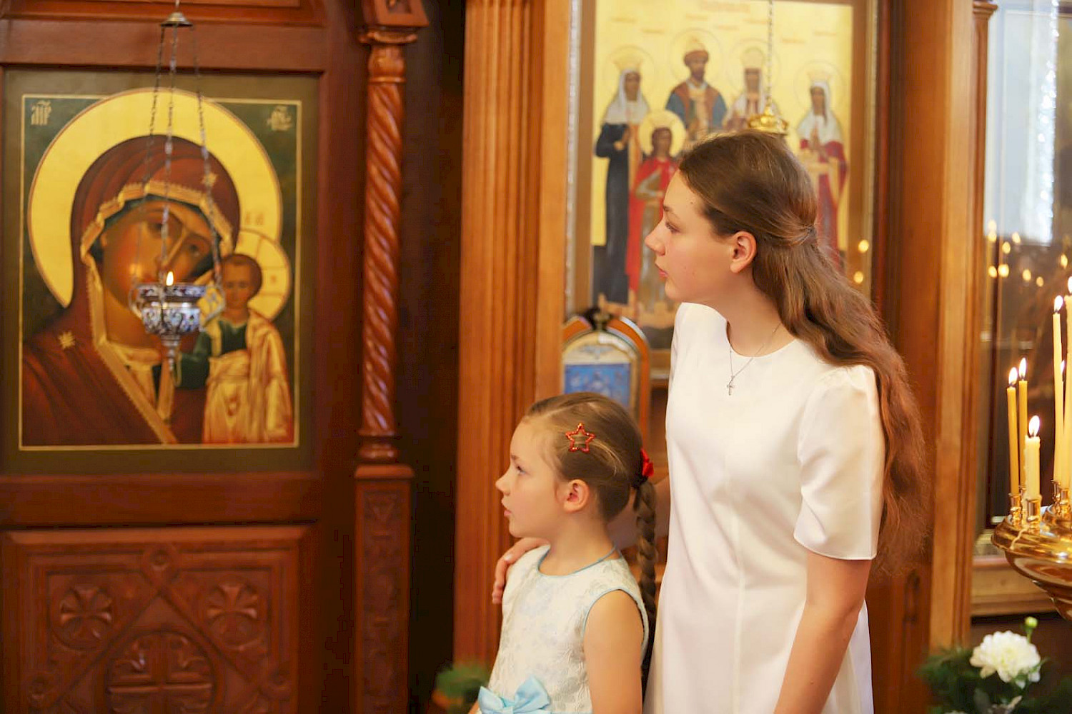 Многих пришедших на службу сегодня мы знаем, ведь приходим в собор уже более двух десятилетий. В этот раз в храм многие пришли с детьми, появилось и немало новых для нас людей, мы стареем, подрастают новые поколения. Светлана Крестовская рассказала, что приходит в родной для нее собор уже многие десятилетия. «Здесь мы венчалась, я выходила замуж. Это наша церковь. Отца Георгия мы очень любим. Рождество для нас семейный праздник, мы собираемся всей большой семьей, это очень старая традиция. В этом году в Сочельник мы приходили вечером в храм на службу, а затем отправились на ужин к моему сыну. А сегодня, в первый день праздника, мы, конечно, в церкви. А потом едем к моей дочери, опять собираемся всей семьей. И так с тех пор, когда еще наши дети были маленькими. А когда я была маленькой – мы жили в Харбине и на праздники также ходили в церковь, но не помню, чтобы собирались вместе за столом. Время и возможности тогда были другими».