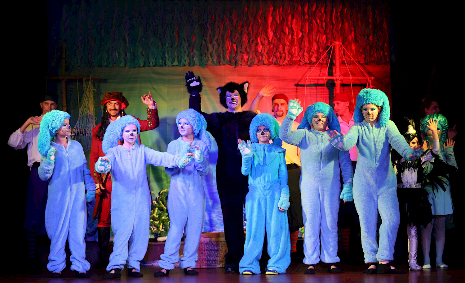 Костюмы: Многие костюмы мы покупали, но их приходилось доделывать и подлаживать под наших актеров, здесь большую работу провела Ольга Збинякова – она сделала великолепный костюм рыбы-пилы и помогла с костюмом черного кота. Но также многие костюмы или детали костюмов были взяты из копилки театра.
