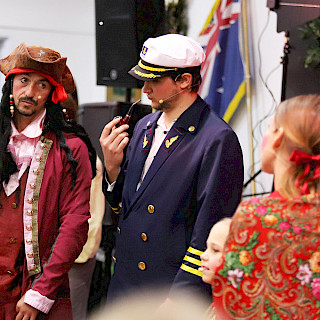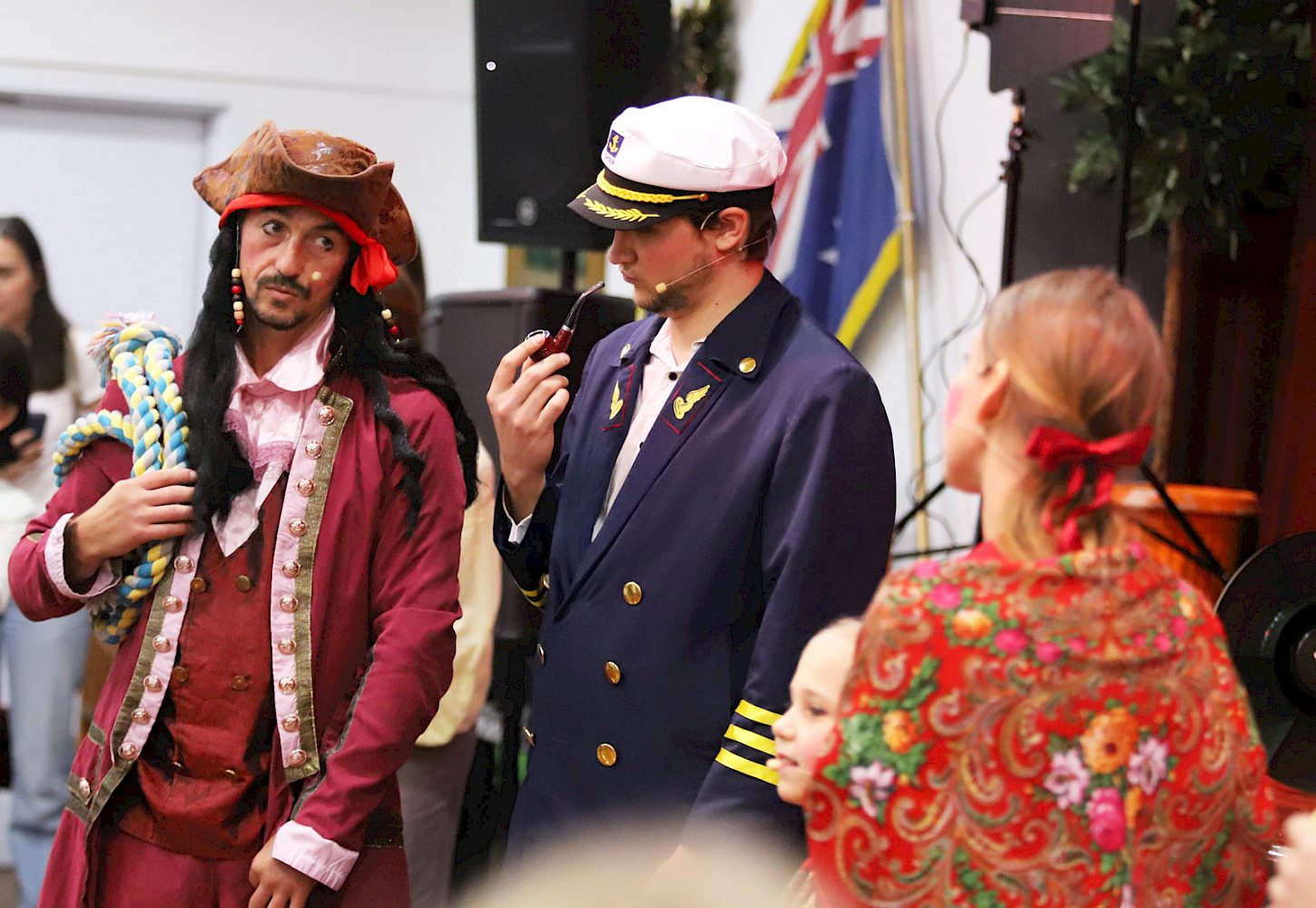 — Начнем с Михаила Куликова, его черный кот запомнился многим. Именно он мечтал показать сиднейским ребятам эту историю. Наконец, его мечта сбылась. Главного пирата сыграл Максим Гефтман, Капитана Джефа – Алексей Дурягин. Не первый раз участвует с нами Михаил Коновалов, он также помогал мальчикам с танцами. Участвовал также Сергей Ан, это его первое выступление в детском спектакле, а вообще зрителям театра «Доремикс» он хорошо знаком по взрослым спектаклям. Часть детей раньше участвовали в детских спектаклях: Вероника и Лев Хромцовы, Алиса Запевалова, Костя Коновалов, Маша Москаленко. Но было много и новых артистов, так как мы проводили кастинг: Амилия Авакян, Вика и Илья Козловы, Рина Гефтман прошли отбор. Рыбу-пилу играла новая девочка Анастасия Куликова, у её младшей сестры Милы была роль медузы и щенка. Вне сцены помогали Николай Запевалов, Даниил Кучеренко, Анна Москаленко. Оксана Попова работала над улучшением вокала, Настя Иешина ставила танцевальные номера. Мы также благодарны родителям наших юных артистов, которые привозили детей на репетиции, помогали за сценой, кормили детей между спектаклями, причесывали, меняли несколько образов грима, это тоже огромный труд.