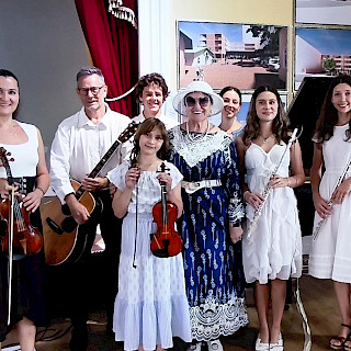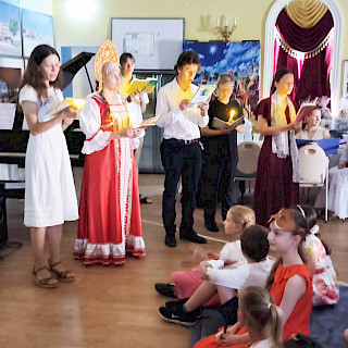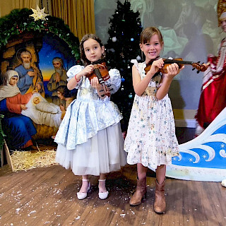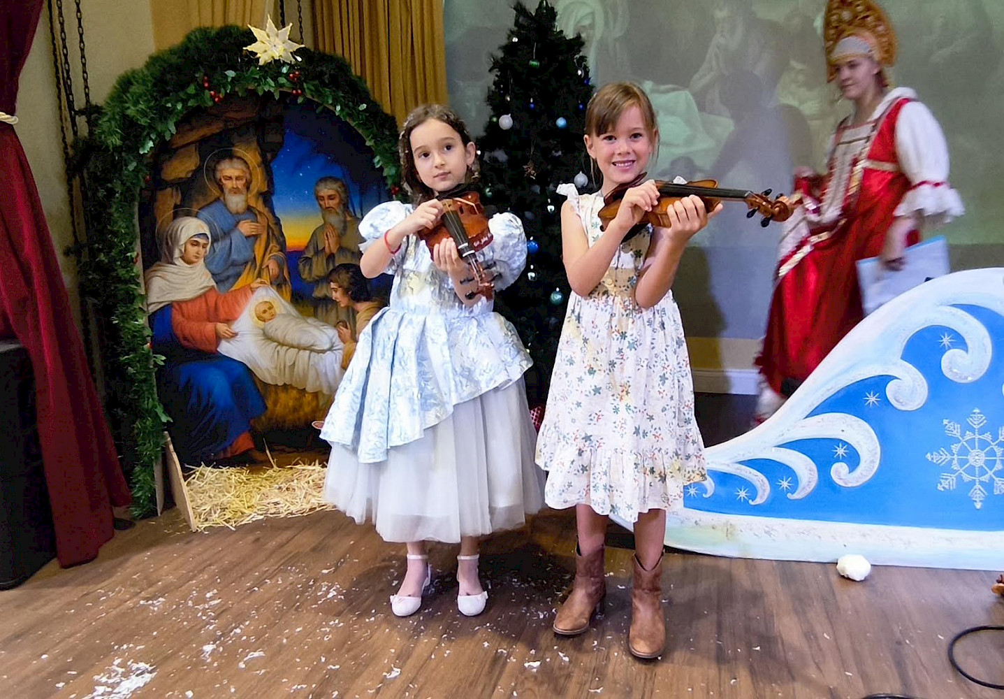 Звучала живая музыка — скрипка, флейта, фортепиано, гитара. Дед Мороз не только плясал, раздавал подарки, но и аккомпанировал на фортепиано. Ведущие были в русских народных костюмах, что придавало празднику особый яркий, фольклорный колорит.