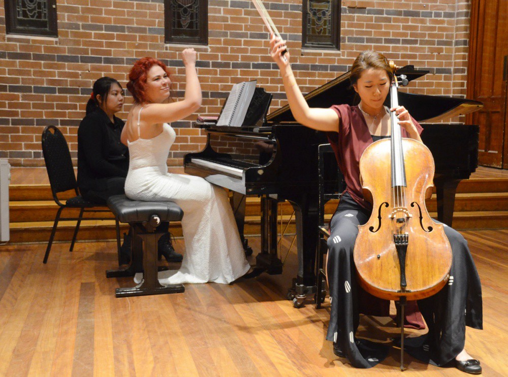 На виолончели играла её ученица Рейчел Сиу. «Рейчел мне как дочка, — рассказала Элен. — Она занималась у меня на фортепиано с пяти лет и больше десяти лет я была её аккомпаниатором. Когда Рейчел исполнилось одиннадцать, она получила стипендию для обучения в престижной музыкальной школе для одарённых детей в Лондоне — Purcell School. Там её ждал великолепный виолончелист и педагог, профессор Александр Ивашкин, с которым мне посчастливилось работать в Новой Зеландии. К сожалению, родители Рейчел побоялись отпустить девочку в столь юном возрасте в школу-интернат. Но восемь лет спустя Рейчел вновь выиграла стипендию и теперь является студенткой одной из лучших музыкальных школ мира в Нью-Йорке — Juilliard School. Она только что приехала на каникулы и готовится к очередному международному конкурсу виолончелистов».
